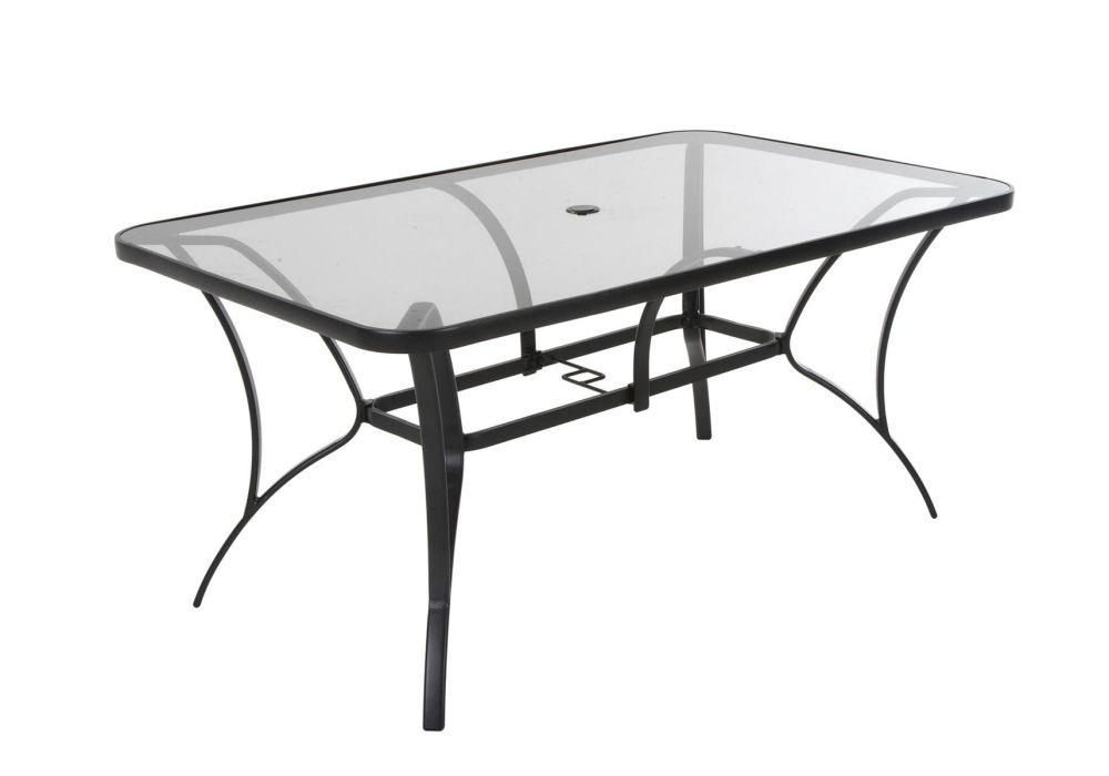 | Additional Features | Stylish and practical • Sturdy steel frame and tempered glass table top • Includes umbrella opening • Weather resistant and easy to clean • Also available as a 7 Piece Set |