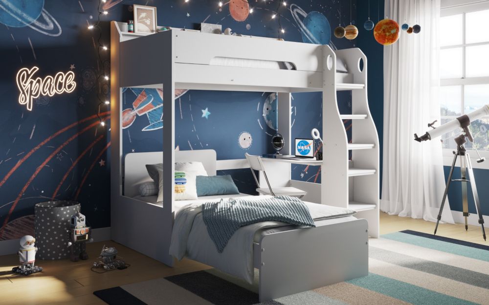| Additional Features | Our Cosmic High Sleeper Bed comes with a built-in desk and an extra single bed |