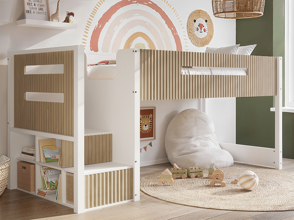 The Flair Luca Mid Sleeper Ribbed combines contemporary design with everyday practicality, making it an excellent choice for children and teens. With its ribbed wood finish paired with clean white accents or an all-white option, this bed offers a stylish and versatile addition to any bedroom. Its clever space-saving design integrates sleeping and storage, helping to maximise room space while keeping belongings organised.