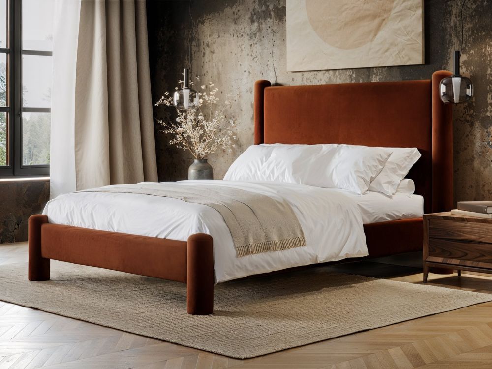 Expertly crafted with attention to detail, this bed features a standout pillar leg design and a generously upholstered headboard, available in two distinctive finishes to complement a range of interior styles. Whether you're aiming for dramatic flair or soft serenity, the Rayne bed offers the perfect blend of style and substance.