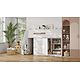 - A cube storage unit with 3 large shelves and a section to hang clothes