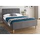 The simple padded frame is supported on pale wooden legs and covered with smart grey hopsack.