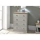 The Kendal 2+3 drawer chest in finished in a stunning grey colour with a complementing wooden oak effect top and brushed steel, curved handles.