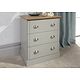 The Kendal 3 drawer chest in finished in a stunning grey colour with a complementing wooden oak effect top and brushed steel, curved handles.