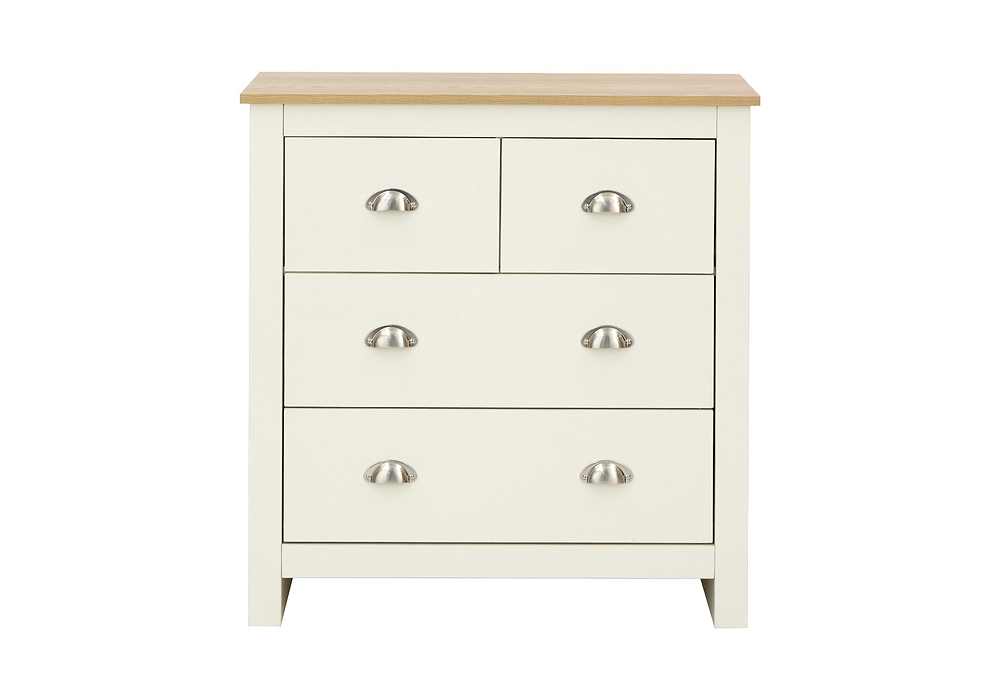 The chest of drawers provides effective storage with 2 small drawers and 2 large drawers.