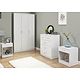 The set comprises a three-door wardrobe, five-drawer chest and a pair of lamp tables with shelf and drawer, providing a good mix of hanging and flat storage.