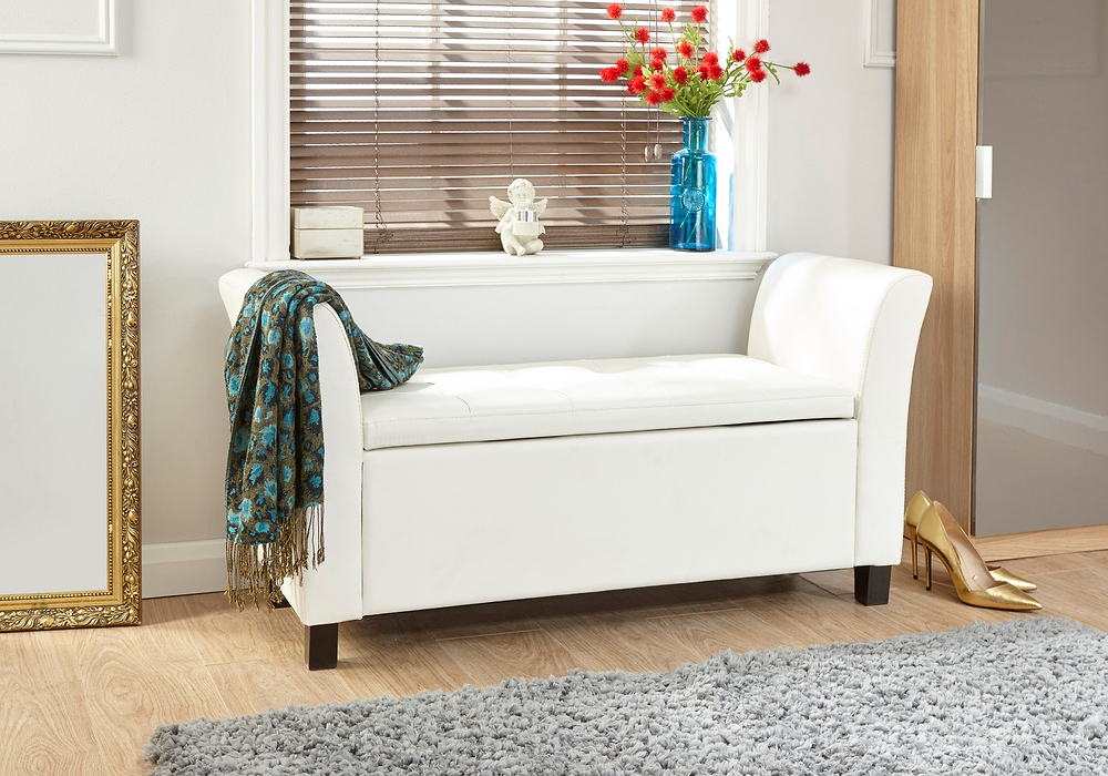 With a deeply buttoned seat and generous storage space inside for hats, gloves, scarves, even shoes and boots or even bed linen and clothes.