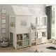 This mid sleeper solid wooden frame has been designed to be the perfect eye-catching novelty bed, taking up a playhouse theme style. This magical statement piece would fit any child's bedroom, as having their own treehouse is sure to make their dreams come true. This particular model includes a pullout desk and also a cube storage unit, which can be used to store toys, clothes or various other items.