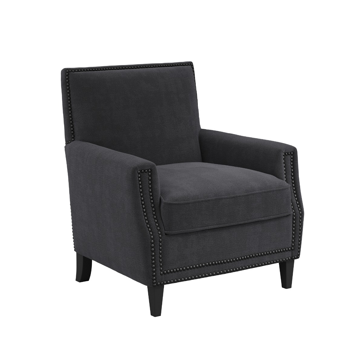 The LPD Atticus Anthracite Chair brings timeless style and cosy comfort into your home. Upholstered in a rich anthracite fabric, it blends classic charm with a modern edge. The sleek, angular silhouette is enhanced by elegant nailhead trim along the arms and back, giving the chair a refined and sophisticated look.