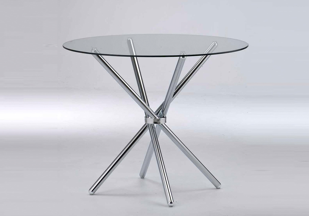 | Additional Features | • Contemporary design • Circular glass table top • Unique chrome pedestal |