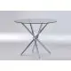 The table rests on a uniquely styled, sturdy, chrome metal pedestal. The combination of the glass and chrome offers a contemporary focal point for your dining space.