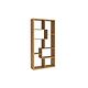 Provided in an Oak finish with 8 vertical and 7 upright shelves in an asymmetrical pattern, this piece will provide a unique aspect to your display needs.