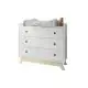The 3 spacious drawers will provide plenty of room for nappies, clothes and bedding and as your baby grows, the changing station can be removed leaving you with a stunning chest of drawers.