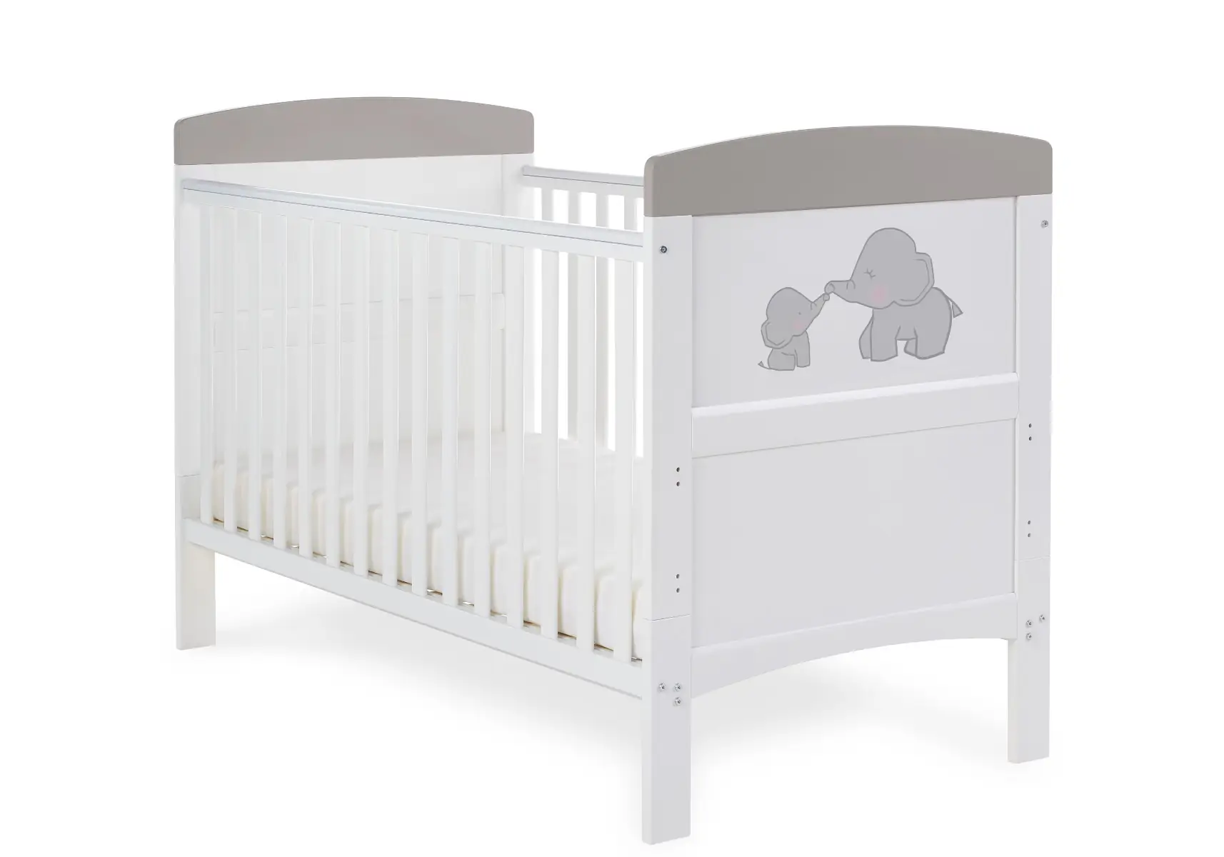 Obaby Grace Inspire Cot Bed - Me & Mini Me Elephants: Where style meets practicality, creating a nurturing haven your little one will love.