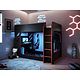 Included is a colourful RBG LED large desk area that supports a TV/Monitor, large under bed space for a chair or beanbag, 2 large pullout storage drawers to store clothes or electronics, a hanging clothes rail, a wide hydraulic-hinged storage box up top and also a large comprehensive step easily to climb the ladder that leads to the sleeping area above.